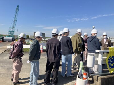 国士舘大学理工学部まちづくり学系で、橋りょう等の道路構造物の設計・施工・維持管理をテーマとして研究されている津野和宏教授の研究室をお招きし、当社が施工中の埼玉県大久保浄水場にて現場見学会を実施しました。